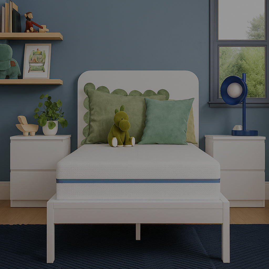 Design revolucionário de dupla face: lado firme (3-7 anos) e lado viscoelástico (8+ anos). Capa removível lavável, 100% livre de fibra de vidro e certificado.